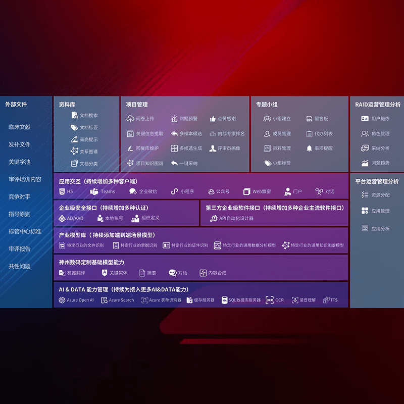 医疗器械产品上市前,,,要熟悉严格与繁复评审标准,,,,整理分析监管机构指导文件中的海量信息。。。企业急需一个智能化解决方案,,,,提升知识管理效率,,,,提高评审通过率,,,以提升其市场竞争力。。